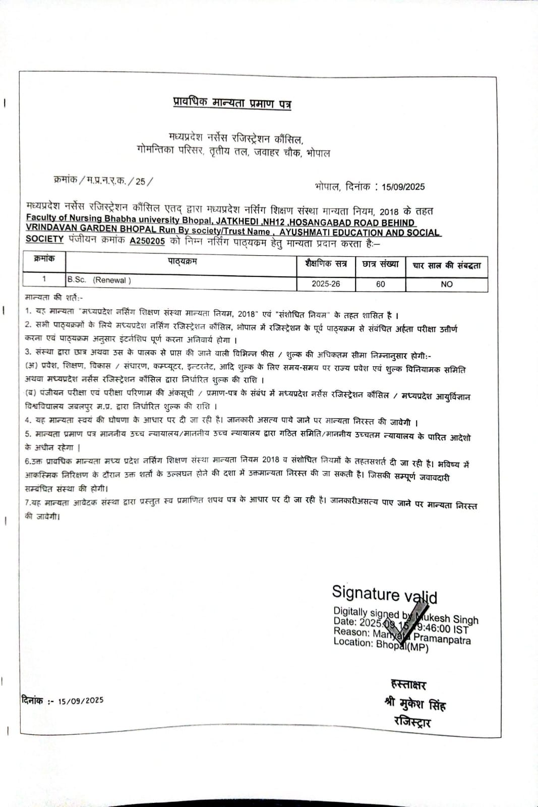 MPNRC Approval 2025-26